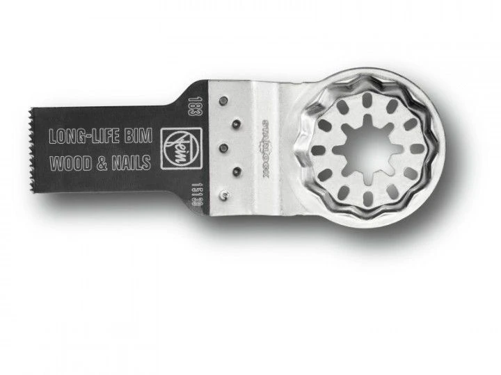 •E-Cut Long-Life-Sägeblatt Bi-Metall mit geschränkter Holzverzahnung für alle Holz-, Gipskarton- und Kunststoffmaterialien. Hervorragende Standzeit, hohe Schnittqualität und guter Arbeitsfortschritt. Äußerst robust, unempfindlich auch gegen im Holz befindliche Nägel (bis ca. Ø 4 mm), Mauerwerk etc. Kurze, sehr schmale Form für kleinste Aussparungen