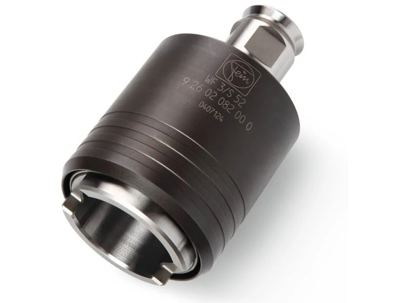 •Gewindeschneid-Schnellwechselfutter für KBM 80 nur einsetzbar für Kernbohreinheiten mit Linkslauf-Funktion. Gr. 3, mit QuickIN MAX-Aufnahme, für Gewindebohrer (DIN 374/376), in Verbindung mit Gewindeschneid-Einsätzen mit oder ohne Sicherheitskupplung von M22 – M27.