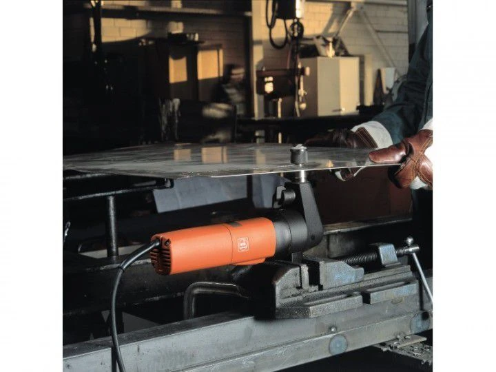 •Bestens geeignet für Aussparungen und Ausschnitte in Blech, Maschine kann auf der Stelle gedreht werden.